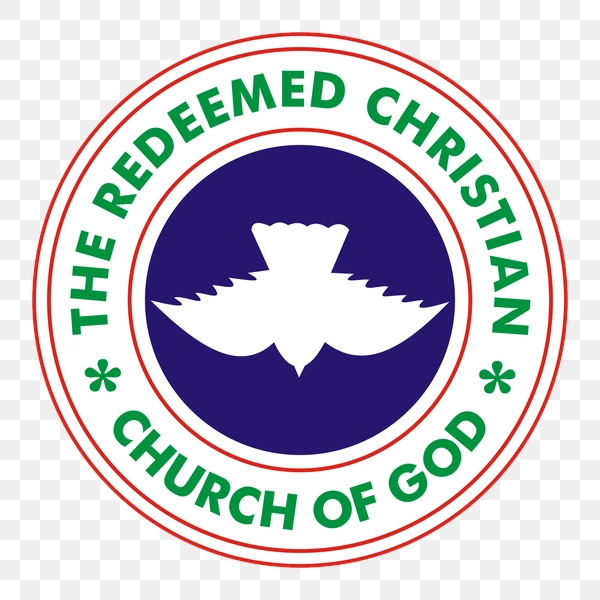 The image presents a stylized logo design for the Redeemed Christian Church. It features a prominent white dove, a classic symbol of peace and the Holy Spirit within Christian theology. The dove is positioned centrally within a solid blue circular background, creating a visually balanced and recognizable design.